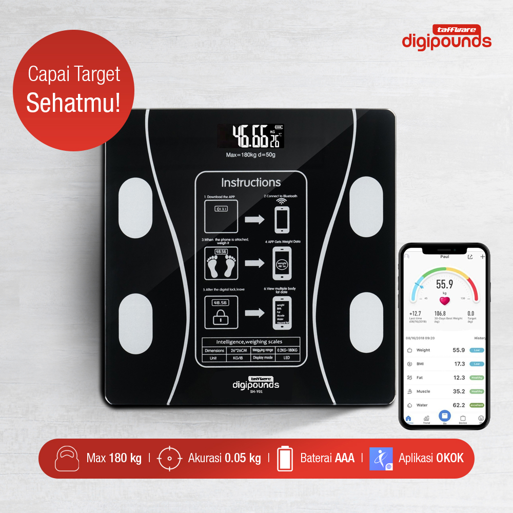 - Taffware Digipounds Timbangan Badan Digital 180kg – SH-Y01